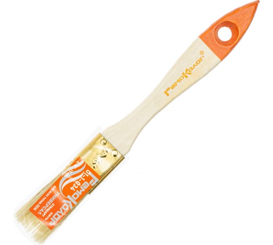 Натуральная светлая щетина. Предназначена для всех типов лакокрасочных материалов. Кончики щетины на конце расщеплены для лучшей впитываемости краски. Бандаж изготовлен из лакированной жести. Для надежного удержания щетины используется клей на эпоксидной основе и деревянные клинья. Рукоятка деревянная покрыта лаком. Кончик кисти окрашен цветной краской.