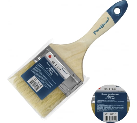 Кисть РемоКолор Евро 3 01-1-130 состоит из натуральной щетины, надежно закрепленной в никелированном бандаже, и окрашенной деревянной рукоятки. Она служит для окрашивания поверхностей лакокрасочными материалами на масляной основе. Щетина имеет мягкие, расщепленные кончики, которые позволяют легко набирать и удерживать краску или лак. Кисть не предназначена для работы с лакокрасочными материалами на водной основе, так как становится жесткой и теряет эластичность.