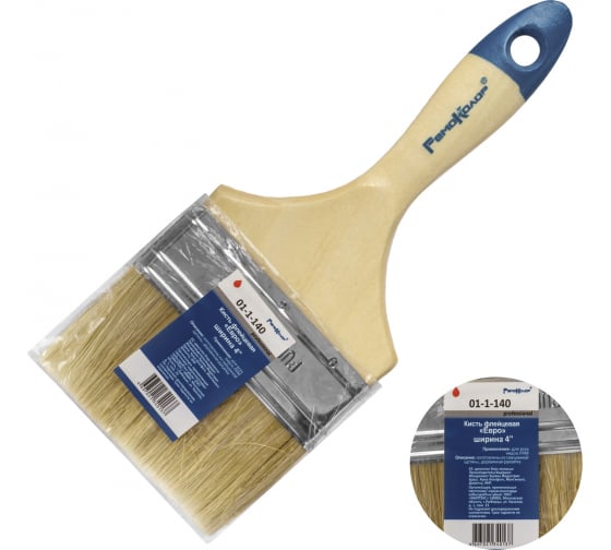 Кисть РемоКолор Евро 4 01-1-140 применяется при малярных работах. Она предназначена для красок на масляной основе, масляных лаков и древесных масел. Благодаря натуральной щетине с расщепленными и мягкими кончиками кисть легко набирает и удерживает краску или лак. Ее не рекомендуется использовать при работе с красками и лаками, имеющими водную основу.