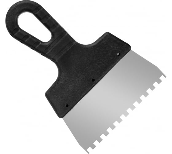 —Шпатель фасадный "Мастер", зубчатый, нерж. сталь 0,4мм, пластик. рукоятка, 150мм, зуб 6х6мм