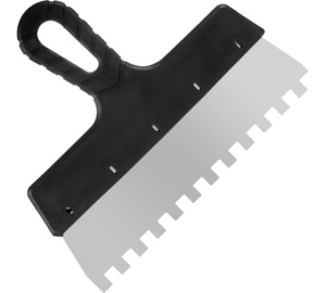 —Шпатель фасадный "Мастер", зубчатый, нерж. сталь 0,4мм, пласт. рукоятка, 250мм, зуб 10х10мм