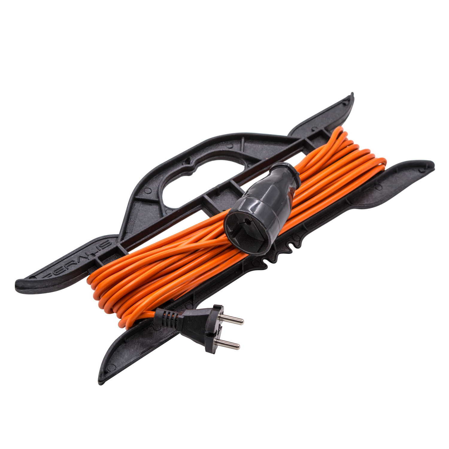 Наличие рамки обеспечивает удобство хранения и переноски удлинителя, а фиксаторы – надежность закрепления провода Провод ПВС сечением 2×1,5мм2, с медными жилами и двойной изоляцией Длина провода – 10м Оранжевый цвет провода делает его заметным, минимизирует возможность повреждения Двойная изоляция провода выдерживает многочисленные перегибы, защищает от пробоя и поражения электрическим током Материал многопроволочных жил кабеля — 100 % медь. Неразборная литая вилка для безопасного соединения.