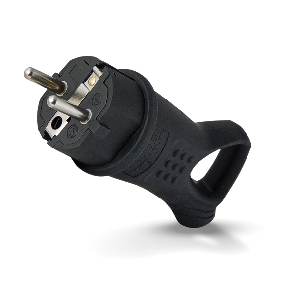 —Вилка каучук, с ушком, однофазная 16А, с/з, черная