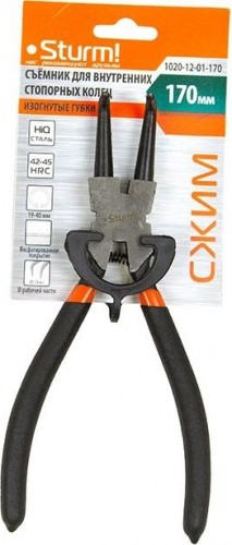 Съёмник стопорных колец 170мм STURM 1020-12-01-170 - ручной инструмент с изогнутыми губками для быстрого и аккуратного снятия/установки стопорных колец. Изделие оснащено удобными, нескользящими накладками на рукоятках.