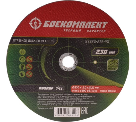Диск отрезной по металлу 230х2,0х22,23 БОЕКОМПЛЕКТ