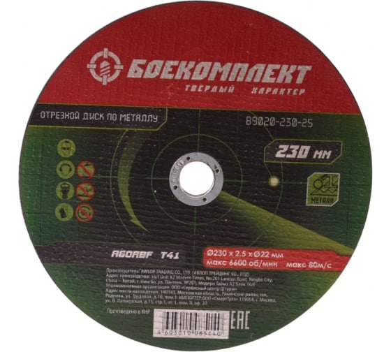—Диск отрезной по металлу 230х2,5х22,23 БОЕКОМПЛЕКТ