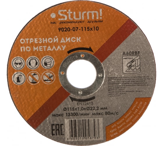 Отрезной диск Sturm 9020-07-115x10 используется в угловых шлифовальных машинах для распила изделий из металла. Благодаря небольшой толщине диска рез получается точный и качественный.