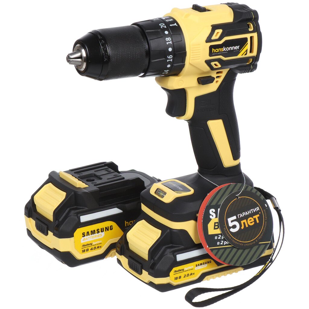—Дрель акк б/щ удар Hanskonner PLATINUM,18В,1BatterySystem,65Нм,2+4Ач,SAMSUNG,кейс HS