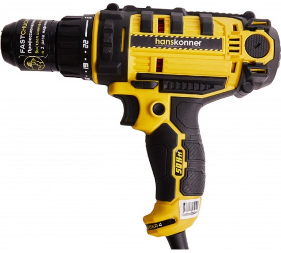 Дрель шуруповерт Hanskonner, 2 скор, метал.патрон 13 мм, 22+1, 50Нм, резин. кабель 4М