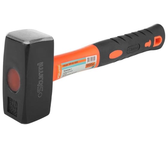 Кувалда, 1000 гр Sturm 1011-02-1000 применяется для работ, в которых необходима большая ударная сила. Боек изготовлен из прочной инструментальной стали. Фибергласовая обрезиненная рукоять амортизирует удар и исключает скольжение.