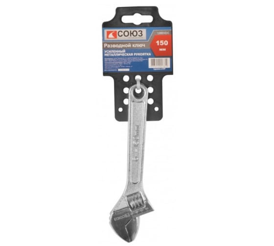 Разводной ключ 150мм, УСИЛЕННЫЙ, МЕТАЛЛИЧЕСКАЯ РУКОЯТКА, ПОДВЕС, СОЮЗ