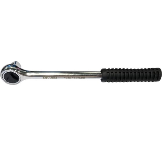 Ключ-трещотка СОЮЗ 1045-15-R1/2C используется для работы с крепежом различной сложности. При необходимости на посадочный квадрат можно установить переходник под биты и торцевые головки большего размера. Рельефная рукоятка исключает скольжение ладони.