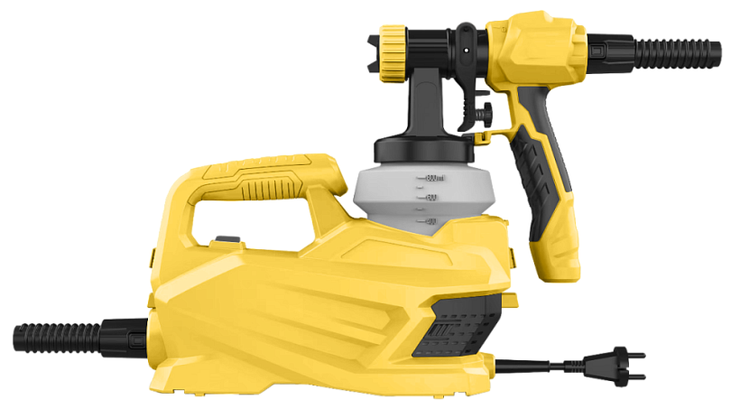 Электрический краскораспылитель Hanskonner HSG9670B — компактный и удобный электроинструмент для простого и быстрого окрашивания поверхностей лакокрасочными материалами различной вязкости, обработки антисептиком. В данной модели применяется технология HVLP (Большой Объем, Низкое Давление), что способствует повышению продуктивности и экономии наносимых растворов вследствие низких потерь на «туманообразование» и «отбоя» краски от поверхности, а также подсушиванию нанесенного слоя восходящим потоком воздуха. Разнесенные компрессор и распылитель обеспечивают минимальные вибрацию и вес, приходящиеся на руки оператора. Сменные сопла и возможность регулирования факела позволяют с полной отдачей окрасить поверхность любой конфигурации. К быстрой разборки и эффективной очистки располагает секционная конструкция краскораспылителя. Для удобной сборки и хранения шланга предусмотрено специальное крепление – StorageHook. Морозостойкий резиновый сетевой кабель длинной 4 м, позволяет охватит рабочую зону площадью 50 м2.