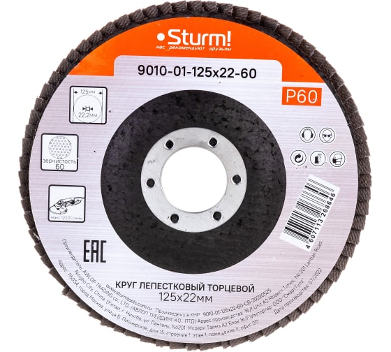 —Круг зачистной ЛЕПЕСТКОВЫЙ 125х22, зерно 60, Sturm!