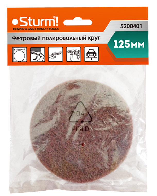 Круг фетровый (125 мм) Sturm 5200401 предназначен для полирования металлических поверхностей. Толщина круга 10 мм.