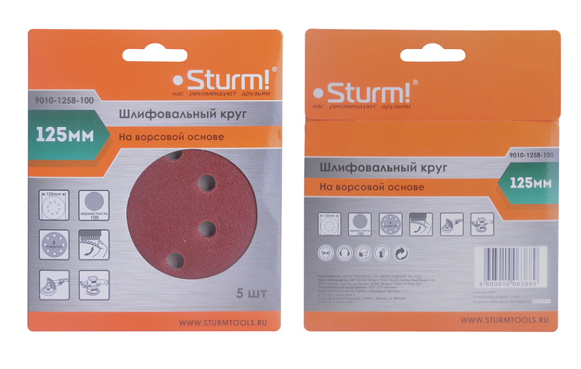 Круг шлифовальный Sturm 9010-1258-100 предназначен для эксцентриковых шлифовальных машин. Применяется для обработки различных материалов. Круг имеет ворсовую основу. К инструменту крепится при помощи велкро-основы (липучки). Оснастка имеет 8 отверстий для эффективного отвода пыли из рабочей зоны.