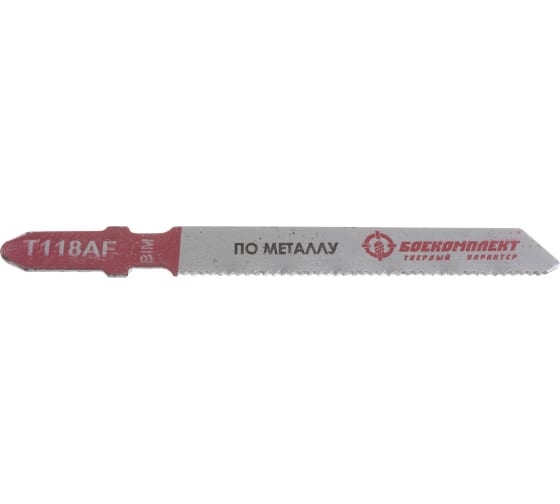 Пилки БОЕКОМПЛЕКТ B02-118AF предназначены для электролобзика. Применяются для прямолинейного реза. Обеспечивают тонкий рез листовой стали. Изготовлены из биметалла. Пилки проходят обработку травления и фосфотирования, что обеспечивает им дополнительную прочность и длительный ресурс. Тело пилок после термической и химической обработки окрашивается, что дает защиту от коррозии. Оснастка имеет универсальный Т-образный хвостовик. Назначение: листовая сталь 1-3 мм; трубы профили 10-30 мм.
