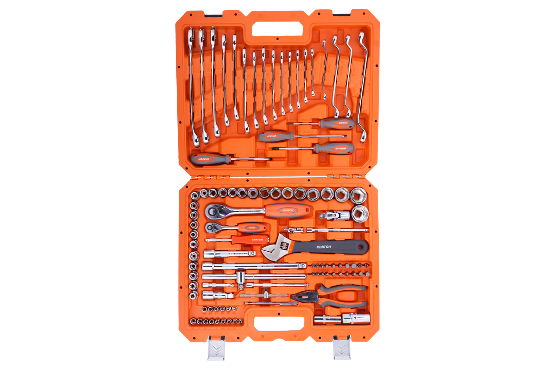 Набор инструментов Кратон TS-28 multi 101, 1/4" + 1/2" — надежный и профессиональный. Большое количество головок под трещетку, отвертки с фиксированным жалом и много других необходимых при ремонте инструментов. Качественное исполнение оснасток, богатый выбор головок под 1/2" и 1/4". Прочные пассатижи, биты. Удобные рукоятки, прочный вороток-удлинитель. Предметов в наборе — 101 шт. Торцевые головки — есть. Максимальный размер головки — 32,0 мм. Минимальный размер головки — 4,0 мм. Трещотка — да. Вес — 11,0 кг.