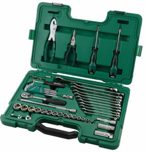Набор инструментов ключей и торцевых головок для автомеханика 59шт Sata S09509 - универсальный комплект необходимых инструментов и приспособлений для выполнения ремонтно-монтажных работ, который идеально подходит для использования как в частных мастерских и гаражах, так и в профессиональных автосервисах. Каждый компонент выполнен из высокопрочной стали, имеет повышенный рабочий ресурс. Отвертки и плоскогубцы оснащены эргономичными двухкомпонентными рукоятками с противоскользящими свойствами. Для снижения риска утери приспособлений в комплекте предусмотрен пластиковый кейс с отдельными ложементами для каждой единицы.