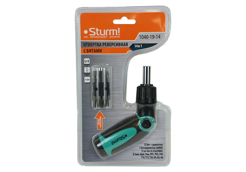 Отвертка реверсивная битодерж. в ручке 14 в 1 Sturm!