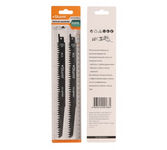 Полотно Sturm 9019-03-S1531L используется совместно с сабельной пилой для резки древесины. Изготовлено из высокоуглеродистой стали. В комплекте 2 шт.