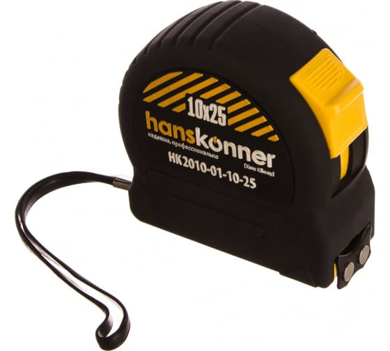 —Рулетка 10x25, 2 стопа,противоударный корпус SoftTouch,мощный магнит,Hanskonner