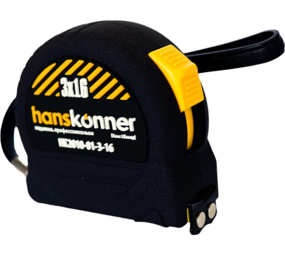 —Рулетка 3x16, 2 стопа, противоударный корпус SoftTouch, мощный магнит,Hanskonner