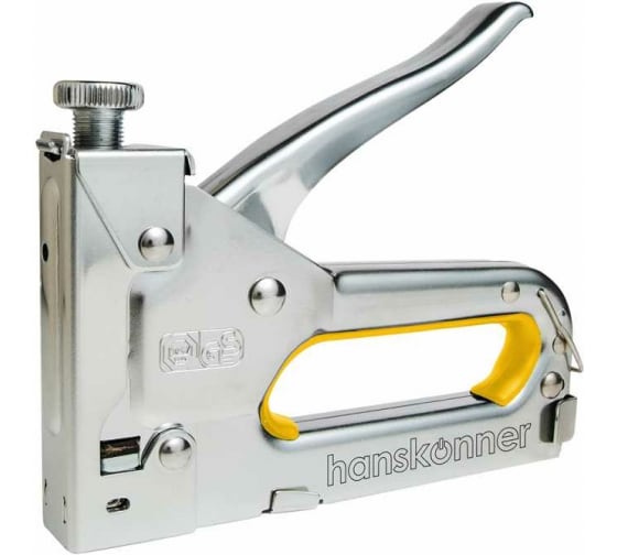 Степлер Hanskonner HK1071-01-06 оснащён высокопрочной ударной пружиной EnduringSping, которая обладает стабильным сохранением упругости на протяжении всего срока службы инструмента. Отрегулировать саму силу удара поможет PrecisedSetUp - система точной настройки натяжения пружины. Корпус степлера надёжно защищён хромированным покрытием для сведения к минимуму воздействия окружающей среды. Специально разработанная эргономичная рукоятка ErgoGrip позволяет полностью контролировать инструмент и даже работать им одной рукой