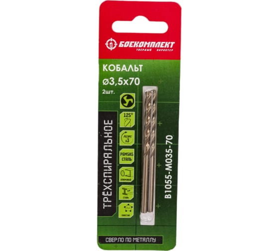 Сверло по металлу ТРЁХСПИРАЛЬНОЕ Кобальт 3,5х70мм 2шт БОЕКОМПЛЕКТ