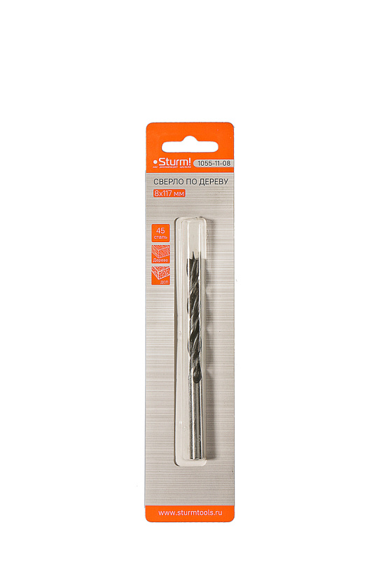 —Сверло спиральное по дереву D=8мм, L=117мм, цил. хв., блистер, Sturm!