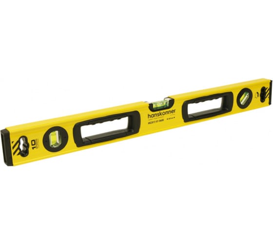 —Уровень алюм.600мм,3 колбы,усилен,фрезеров.,двойной обзор, 0,5мм/м, Hanskonner
