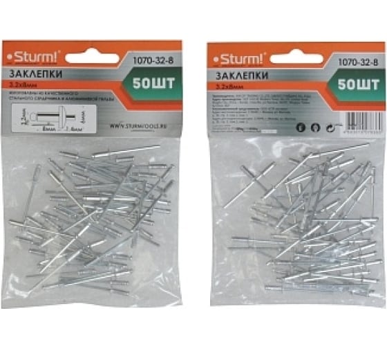 Заклепки, 3,2 х 8 мм, 50 шт.,Sturm!