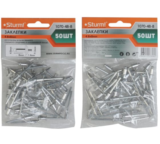 Заклепки, 4,8 х 8 мм, 50 шт.,Sturm!