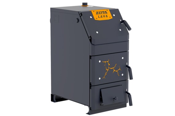 загрузка топлива через наклонную топочную дверцу, закрывающуюся на замок;