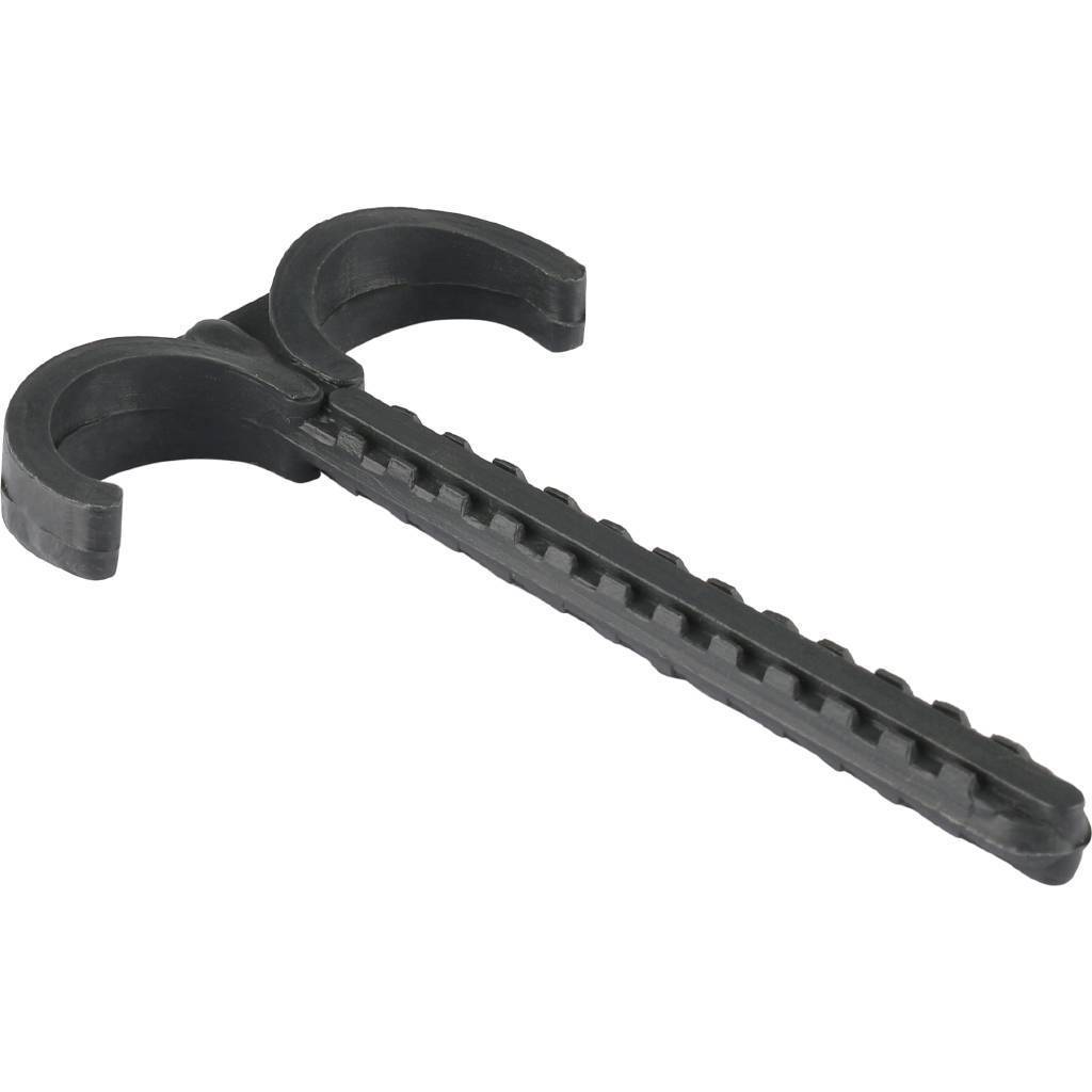 Дюбель-крюк двойной, для труб д.32мм, длина 80мм Дюбель-крюки предназначены для крепления полимерных и металлополимерных труб к бетонным полам и другим строительным конструкциям зданий. Крюки изготовлены из полипропилена и выпускаются двух типов: одинарный – для крепления одиночной трубы; двойной – для крепления пары параллельно прокладываемых труб. Дюбель-крюки забиваются молотком в предварительно просверленные в строительной конструкции отверстия диаметром 7 мм и глубиной 60–70 мм. Крюк надежно фиксирует трубу, не передает вибрацию и не подвержен коррозии.