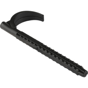 Предназначен для крепления полимерных и металлополимерных труб к бетонным полам и другим строительным конструкциям зданий. Крюки изготовлены из ударопрочного полимера и выпускаются двух типов: одинарный - для крепления одиночной трубы; двойной - для крепления пары параллельно прокладываемых труб. Дюбель-крюки забиваются молотком в предварительно просверленные в строительной конструкции отверстия. Крюк надежно фиксирует трубу, не передает вибрацию и не подвержен коррозии.