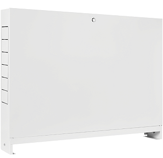 Шкафы коллекторные ROMMER ШРН наружные представляют собой специализированные металлические шкафы, предназначенные для размещения распределительных коллекторов радиаторной или напольной разводки, а также водопровода. Они изготавливаются из листовой стали, окрашенной порошковой эмалью белого цвета RAL 9016, что обеспечивает их долговечность и эстетичный внешний вид. Конструкция шкафов включает корпус, дверцу, лицевую рамку, сегментную перфорацию, выдвижные ножки, крепежные рейки и замок. Внутри шкафа установлены подвижные универсальные профильные крепежные рейки, позволяющие удобно размещать оборудование в любом месте по высоте и ширине шкафа. Крепление коллекторов и другого оборудования производится к монтажным рейкам, которые могут раздвигаться на требуемую ширину, а посадочные болты на них передвигаться по вертикали.