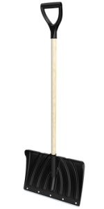 Лопата снегоуб., пластм., с накл, дер. черенок, с V-образной рук.,