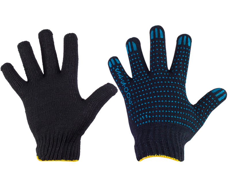 —Перчатки Х\Б 7,5 класс вязки, 5-ти нитка, черные с ПВХ, (шт.)