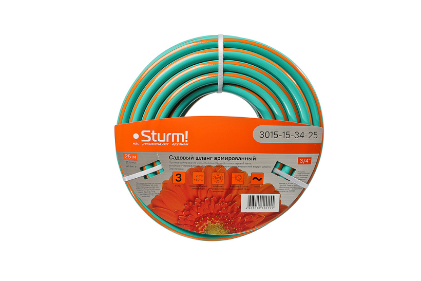 Шланг д/воды 3/4" 25м оранж+мятн,УСИЛЕННЫЙ АРМИР. 3 слойн., без примес. Sturm!