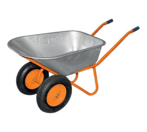 Особенности и преимущества: - Грузоподъемность 180 кг. - Объем кузова 90 л. - Толщина стенки 0,7 мм. - Колеса 16" пневмо. - Вес тачки: 15,62 кг. - Прочный кузов тачки с завальцованными бортами, выполнен из оцинкованной стали - Позволяет перевозить тяжелые грузы не опасаясь деформации кузова. - Прочная рама изготовлена из трубы диаметром 32 мм., это обеспечивает тачке большую грузоподъемность и прочность. Рама окрашена эмалью, защищающей тачку от коррозии. - Большой диаметр колеса 40 см (16"") обеспечивает легкий ход тачке, в том числе на неровных поверхостях (тачка не застрянет в мелких ямах). - Надежное крепление колеса на подшипнике, позволяет выдерживать интенсивные нагрузки, дает плавность хода и долкий срок службы тачки. - Колесо пневматическое – обеспечивают мягкий ход и они амортизируют толчки даже при прохождении по неровной поверхности. Цельнометаллический обод колеса. - Опора кузова и сварные кронштейны колеса обеспечивают большую грузоподъемность. - Упор для выгрузки - удобство разгрузки тачки.