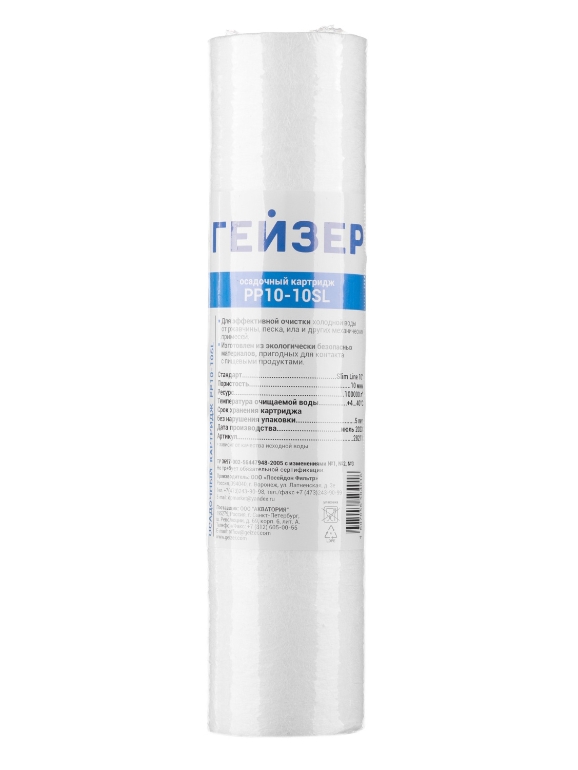 PP 10 - 10SL - картридж из вспененного полипропилена, предназначен для механической очистки воды от ржавчины, грязи, песка и других нерастворимых примесей размерами более 10 мкм. Восстановлению не подлежит, после окончания ресурса заменяется на новый.
