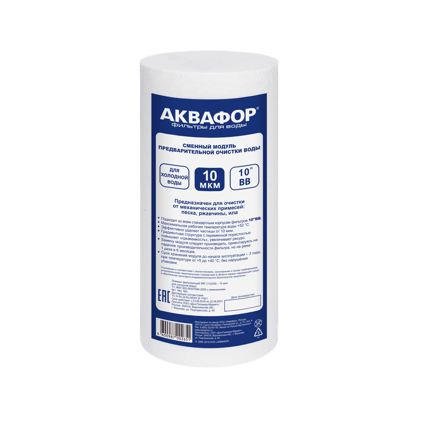 Сменный модуль для предочистки холодной воды. Используется в корпусах предфильтров Гросс 10, а также подходит ко всем стандартным корпусам фильтров 10"BB. Изготовлен из 100%-го полипропилена. Градиентная структура с переменной пористостью повышает "грязеемкость", увеличивает ресурс. * Пористость фильтрующего материала - 10 мкм. * Максимальная рабочая температура воды +38°C