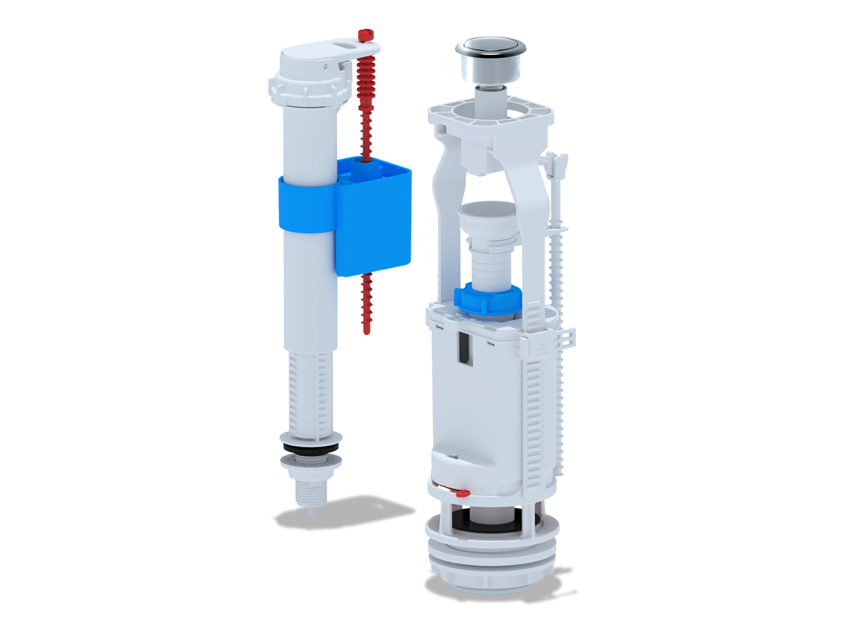 Набор для бачка унитаза. Наливной механизм с нижней подводкой и пластиковой резьбой диаметром 1/2", регулировка по высоте 265-355 мм (стойка механизма поворачивается, устанавливается нужная высота, после чего поворачивается обратно). Сливной механизм хромированная кнопка с одним режимом слива, регулировка по высоте 290-410 мм. Отверстие для кнопки слива в крышке бачка 40 мм, посадочное отверстие сливной арматуры 60 мм. Арматура является важным механизмом, необходимым для правильной работы сливного бачка. Изделие произведено из высококачественного пластика, который обеспечивает длительную эксплуатацию без поломок. Комплектация: сливная арматура, заливная арматура, инструкция, упаковка.
