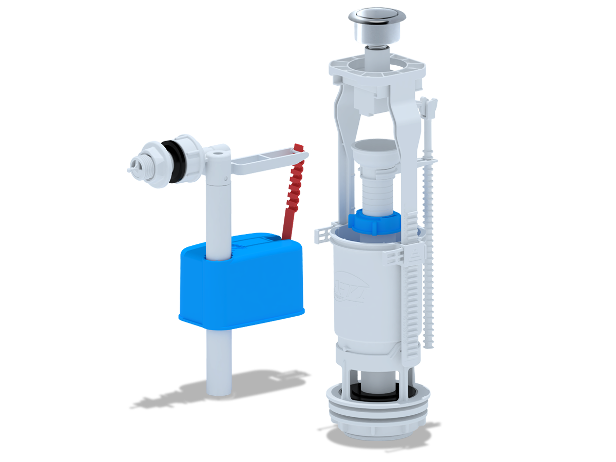 Набор для бачка унитаза. Наливной механизм с верхней боковой подводкой и пластиковой резьбой диаметром 1/2". Сливной механизм металлизированная кнопка со штоковым режимом слива, регулировка по высоте 290-410 мм. Отверстие для кнопки слива в крышке бачка 40 мм, посадочное отверстие сливной арматуры 60 мм. Арматура является важным механизмом, необходимым для правильной работы сливного бачка. Изделие произведено из высококачественного пластика, который обеспечивает длительную эксплуатацию без поломок. Комплектация: сливная арматура, заливная арматура, инструкция, упаковка.