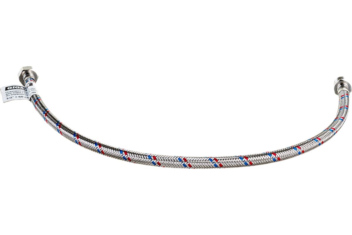 Подводка гибкая для воды с оплеткой из нержавеющей стали 1/2"х60 см г/ш P-60-GW представляет собой резиновый шланг в металлической оплетке из нержавеющей стали и обладает высокими прочностными характеристиками. Обеспечивает присоединение смывных бачков, смесителей, водонагревателей, стиральных и посудомоечных машин к трубопроводам холодного и горячего водоснабжения. Подводка позволяет производить подключение к точкам водозабора в труднодоступных местах. В процессе монтажа изделие можно сгибать и придавать необходимую форму. Подсоединяется гибкая подводка к точкам водозабора с помощью металлических накидной гайки и штуцера.