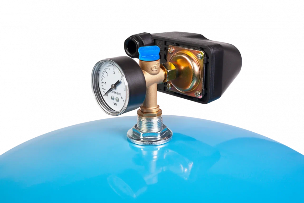 Краткое описание Комплект автоматики на баке «КАБ» от ДЖИЛЕКС» используют для совместной работы с гидроаккумулятором. Принцип работы Когда уровень давления воды понижается до установленного предела, срабатывает реле давления и включает электронасос. Когда гидроаккумулятор наполняется, и напор превышает установленное пороговое значение реле, автоматика отключает насос. Особенности оборудования В комплекте идет манометр, который крепится к отдельному входу штуцера и позволяет отслеживать уровень давления в системе в пределах 6 бар. Есть возможность подсоединения дополнительных элементов, через отдельный вывод с наружной резьбой под размер G1/4. Установлена резьбовая заглушка для первоначального выпуска воздуха из мембраны. В комплекте идет футурка G1/2 с наружной резьбой для подключения к воздухоспускному штуцеру в других баках. Технические характеристики Диапазон рабочего давления от 1 до 5,5 бар. Присоединительные размеры с наружней резьбой: G1/4 без футорки и G1/2 с футоркой Диапазон температуры воды от +1 до +35 ℃. Гарантия 2 года.