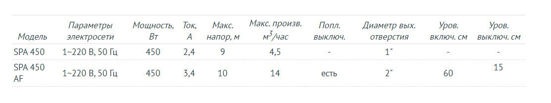 Устройства SPA 450 AF укомплектованы поплавковым выключателем.