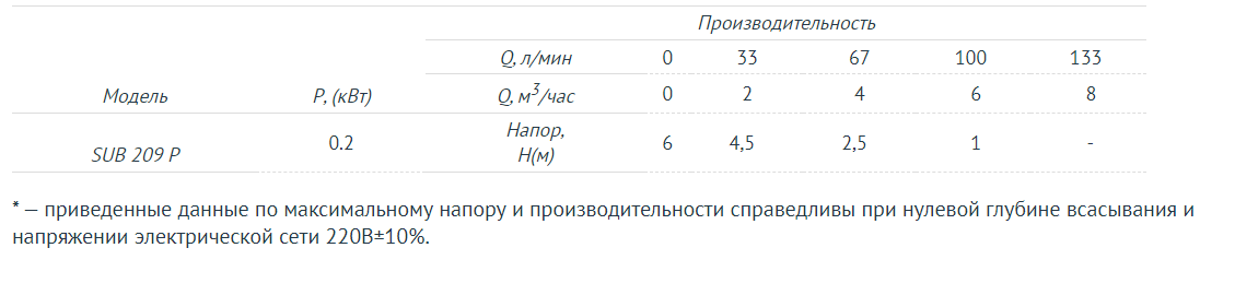 Насосы имеют герметичный корпус, могут работать частично или полностью погруженными в воду (глубина погружения в перекачиваемую жидкость до 5 метров).