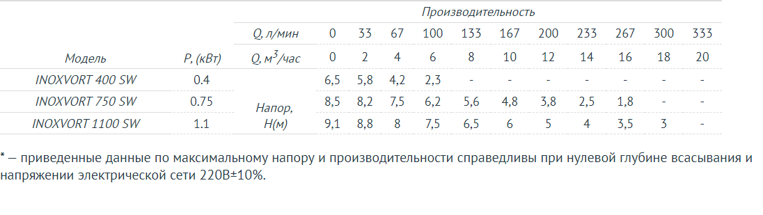 Насосы имеют герметичный корпус из нержавеющей стали, могут работать частично или полностью погруженными в воду (глубина погружения в перекачиваемую жидкость до 5 метров).